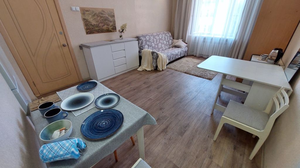 Большая, светлая и уютная комната 20 кв. м, с потолками 2,9 м, с ремонтом, всей необходимой мебелью и техникой. Две соседние комнаты занимают 2 девушки, в одной комнате никто не живёт. Есть отдельная прихожая на две комнаты. Места общего пользования чистые и просторные, с/у раздельный, 3 раковины – на кухне, в туалете и в ванной. |