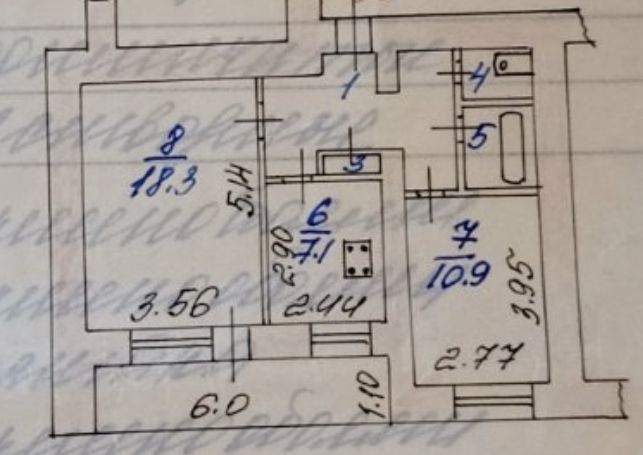 | Площадь (кв.м.) | Общая: 50.1 Жилая: 29.2 Кухня: 7.1 Комнаты: 18.3+10.9 50.1 / 29.2 / 7.1 |